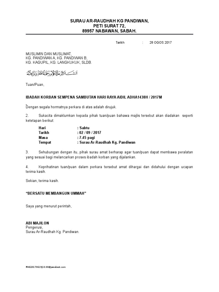 Documents similar to surat jemputan majlis perpisahan. Majlis aqiqah & kesyukuran dengan rasa penuh kesyukuran kesyukuran ke hadrat allah swt, dengan. Surat jemputan ke majlis anugerah cemerlang via www.slideshare.net. Lihat surat panggilan/jemputan di bawah. Karangan berformat bm surat jemputan ke majlis rasmi.